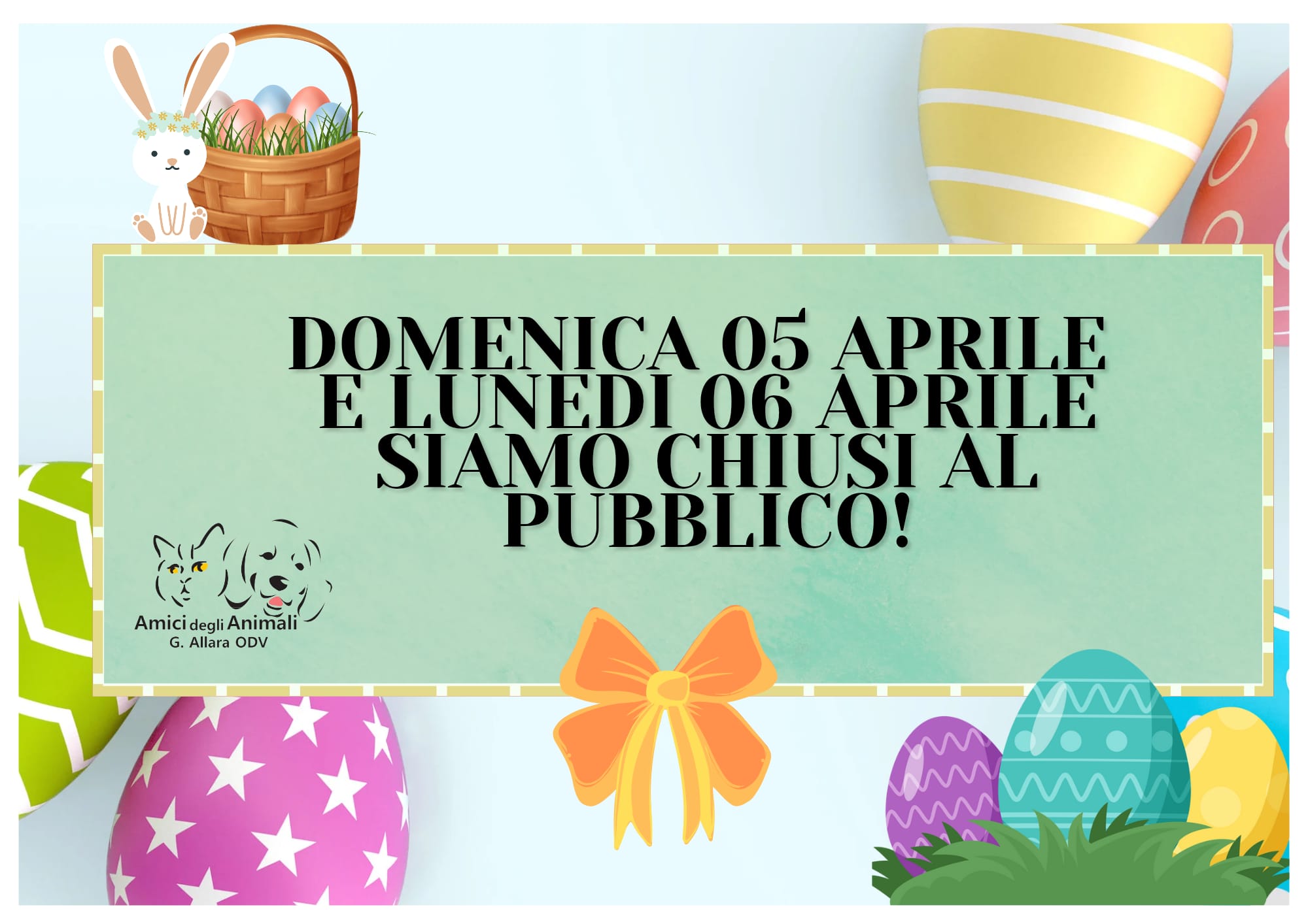 vi informiamo che il Canile e Gattile Cascinotto di Collegno resterà chiuso al pubblico in occasione delle festività di Pasqua e Pasquetta: