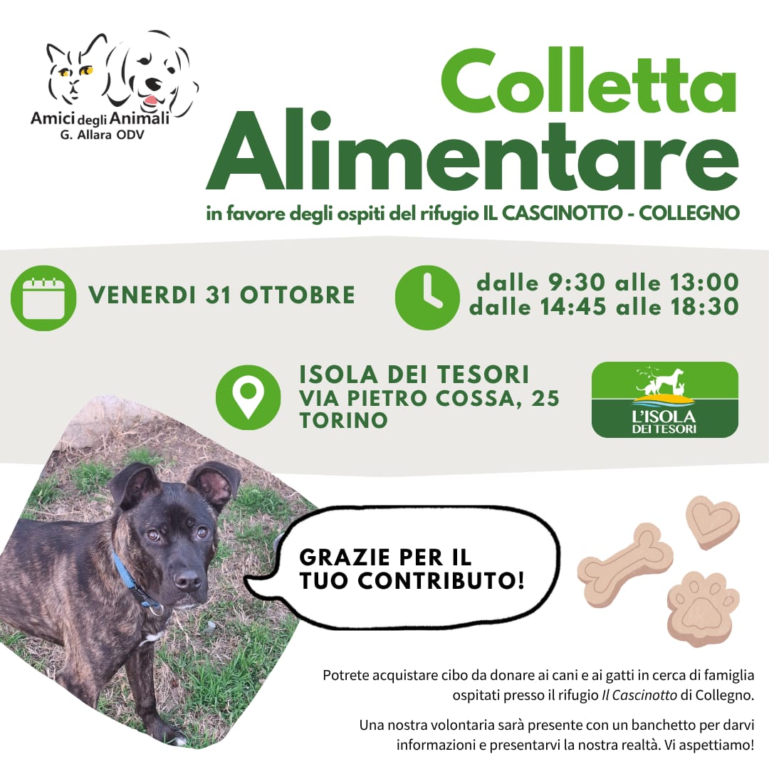 Amici e amiche! Questa settimana Vi aspettiamo Venerdì 31 Ottobre, presso L’Isola dei Tesori di Via Pietro Cossa, 25 Torino, per una colletta alimentare in favore dei nostri ospiti!