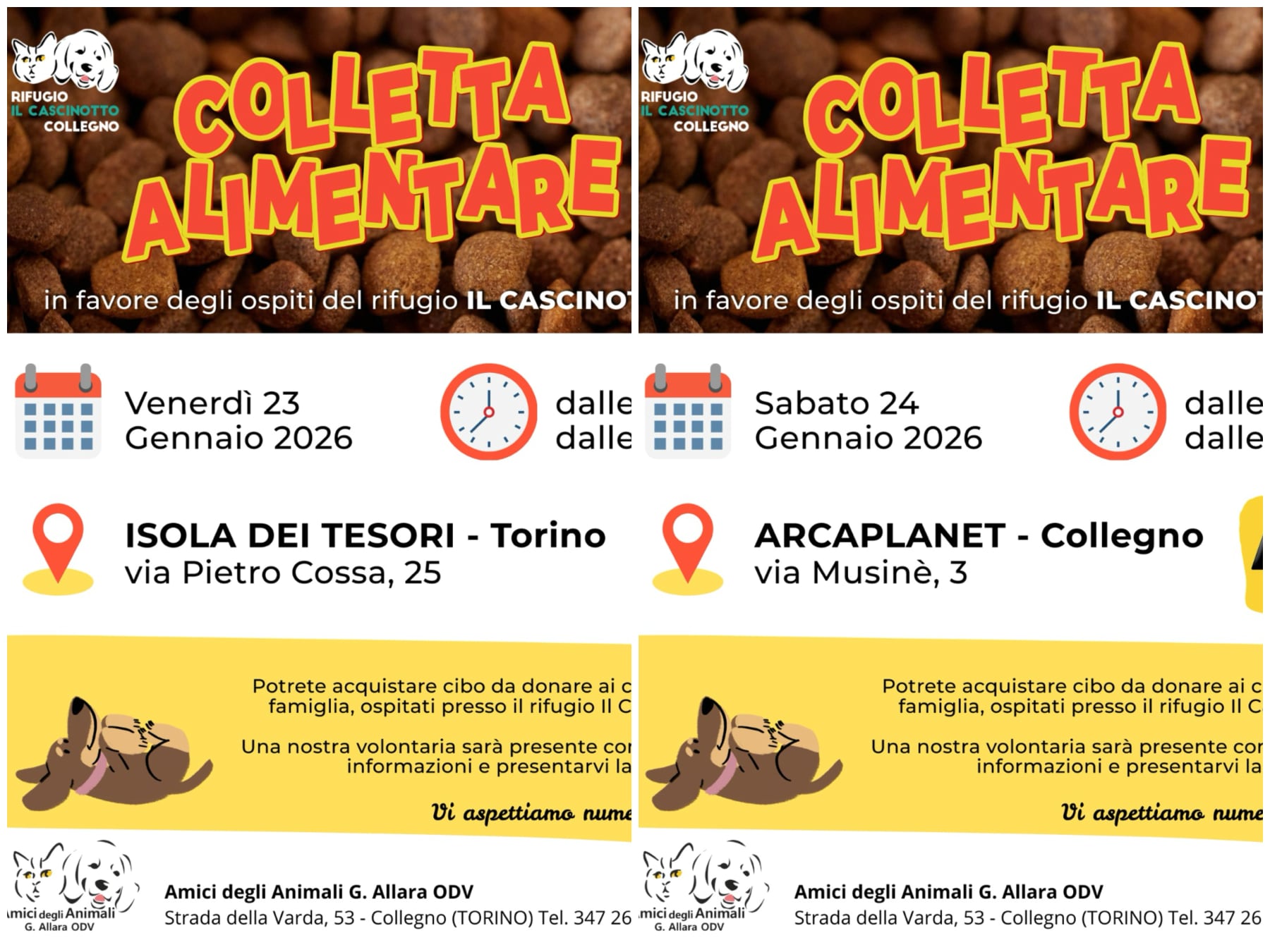 Venerdì 23 e Sabato 24 Gennaio doppio appuntamento per raccolta alimentare dedicata ai nostri meravigliosi ospiti a quattro zampe!